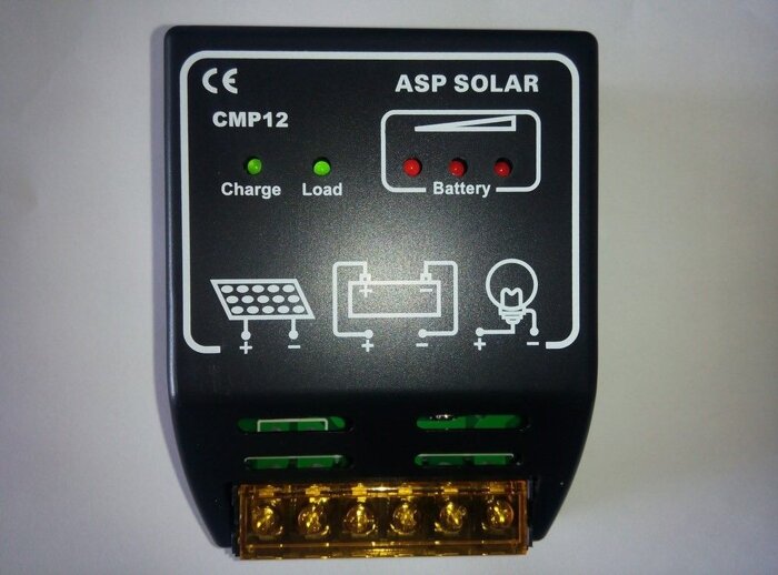 - Контроллер заряда 12В/24В 10А для энергосистем на солнечных батареях CMP12-20А;