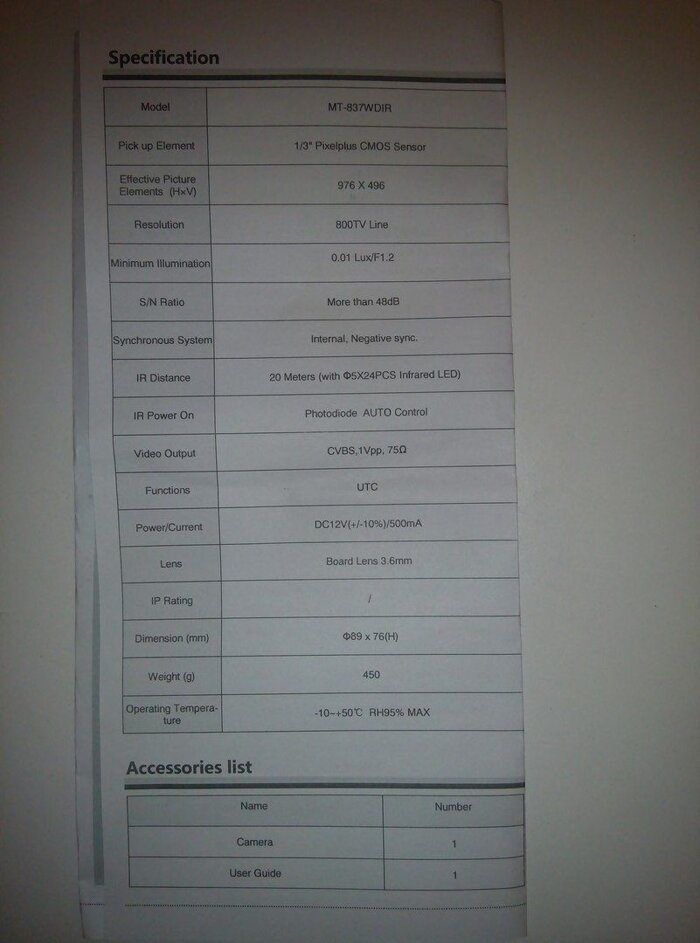 - Чувствительность 0,5Lux(цвет), 0Lux (ч/б).