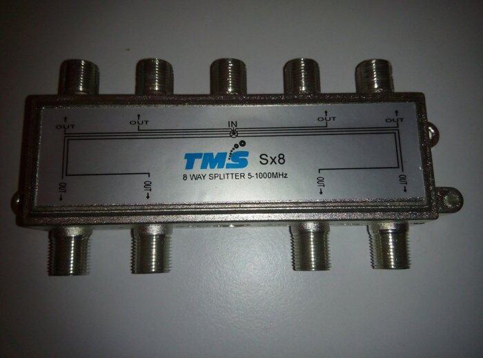 Делитель абонентский Split Sx8 TMS предназначен для распределения эфирного или кабельного ТВ сигнала в диапазоне 5-1000 МГц конечным абонентам во внутридомовой и внутриквартирной разводке на 8 направлений, равных по-мощности. Делитель выполнен в литом корпусе с гальваническим покрытием, тем самым обеспечивая достаточную степень экранирования от внешних наводок и помех, а также обеспечивает стабильную работу обратного канала в DOCSIS-сетях распространения Интернет.