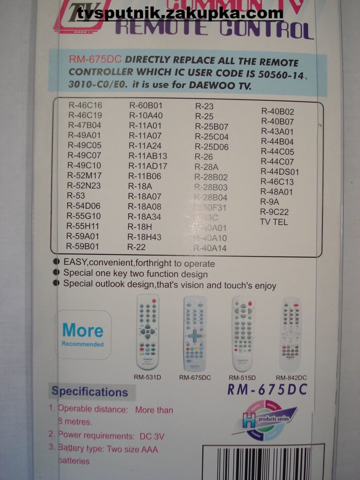 Опис товару: Пульти дистанційного керування, DAEWOO (HUAYU) RM-675DC універсальний
