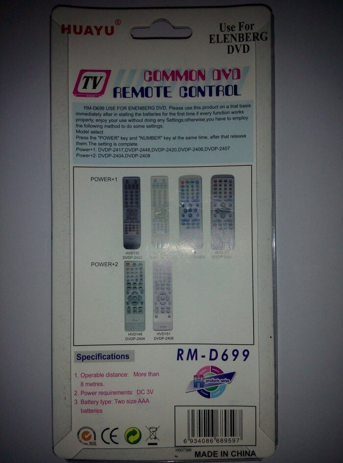 Опис товару: Пульти дистанційного керування, ELENBERG (HUAYU) RM-D699 універсальний