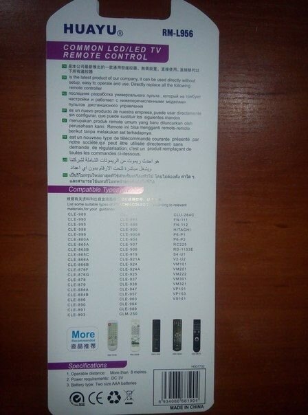 Пульт для телевізора HITACHI (HUAYU) RM-L956 універсальний, Виробник: HUAYU, Група: Пульти дистанційного управління, Колір: чорний