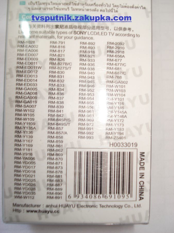Пульт Sony RM-1025 замінює наступні пульти по всіх основних функцій: