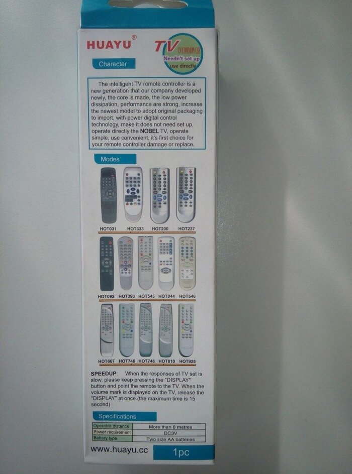 Включає в себе найбільш поширені коду для китайських телевізорів таких популярних брендів: KONKA, JIN LI PU, AVEST, AKIRA, NOBEL, SIESTA і т. д.