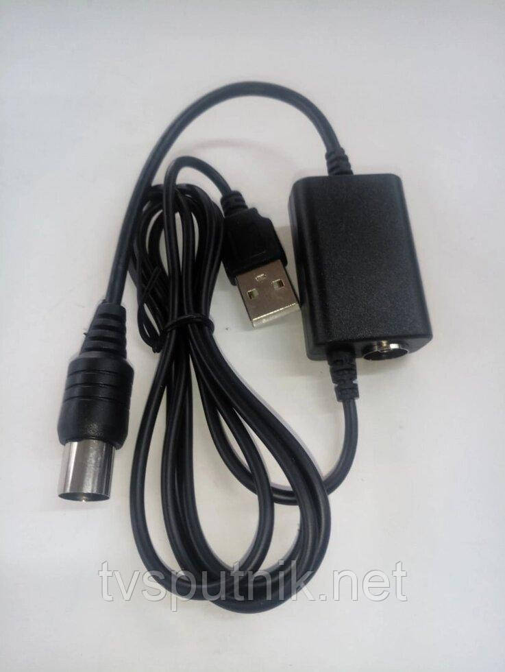 Антенний адаптер (інжектор живлення антени від USB) 5 В з USB-кабелем та роз'ємами ТВ гніздо та штекерАдаптер живлення USB призначений для подачі напруги живлення +5В від гнізда USB (від телевізора) до підсилювача (активної антени).